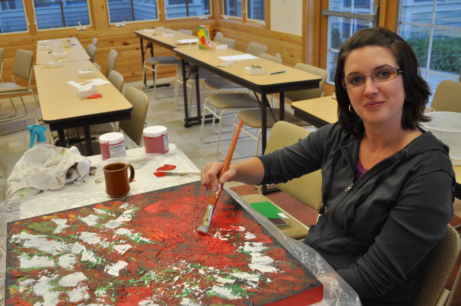 When we were at Mount Carmel for our Women’s Retreat, we found time to play. Here, JeMA and Joy (my little sister) are playing in the leaves. We also took a walk, played a board game, and fooled around with the art supplies.