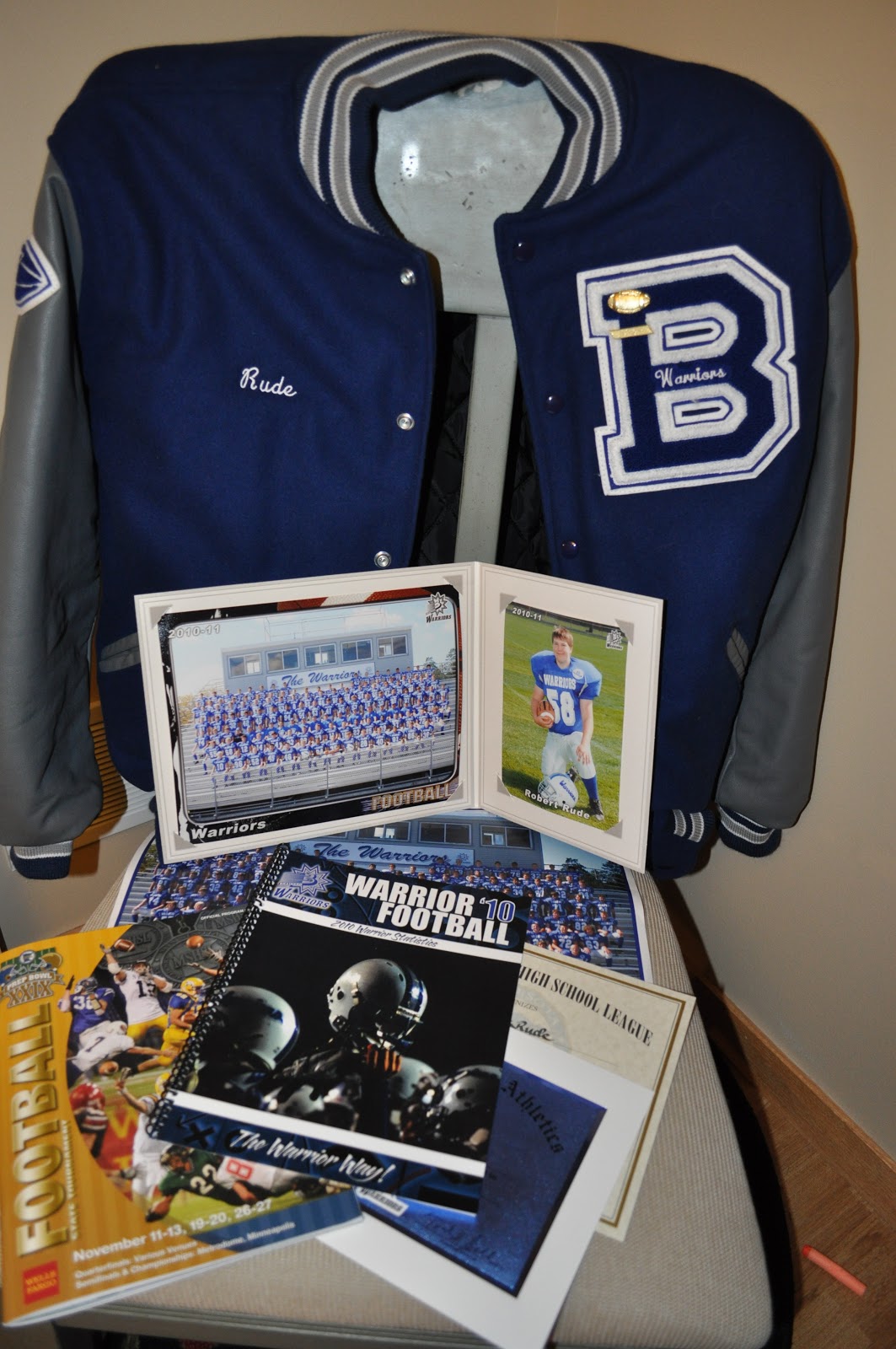 Quote of the Day: Kenny Chesney says it best in this video from YouTube The Boys of Fall. They played this song during the slide show at the Football banquet last night. My big boy was on the team. His position is Offensive Lineman. He played during the JV games and one quarter of a varsity game that our team dominated. Mostly, he stood on the sidelines, suited up and ready, and cheered on his teammates. Brainerd had a winning season. They made it to the metrodome for the semi-final game, and lost.