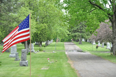 The boys noticed new things this year – all the flags for the soldiers, the larger headstones for families who lived and died here, and how large the cemetery is. I explained that not everyone buried here is a soldier. It’s a community cemetery that goes back about 100 years.