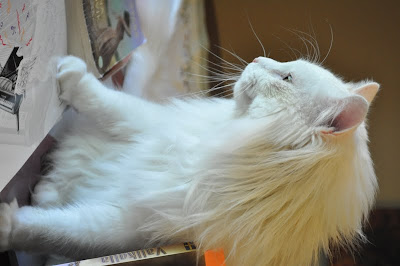 At one point he licked the books. The first time I had lobster bisque, I told the waitress that it was so good I could lick the bowl. Guess the same goes for books, just ask Leo.