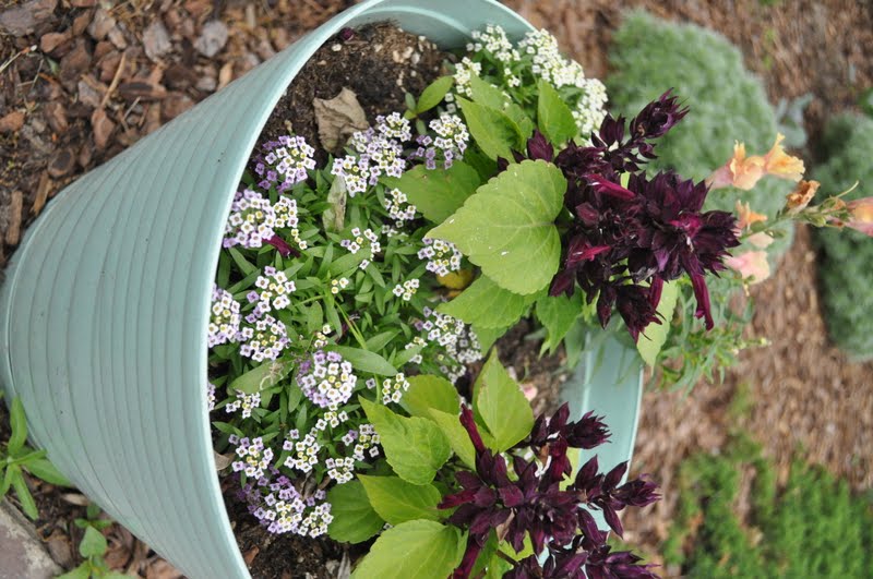 The problem with writing about my non-pot pot garden where I don’t grow pot for my sister-in-law, Mary, is I don’t consider it a pot garden at all, but a bucket garden.