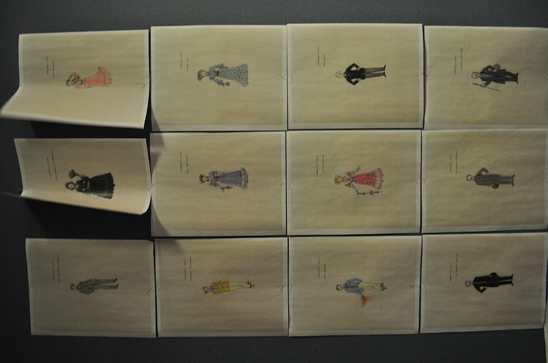 This board of costume sketches fascinated me. Carrie told us that the artist who designed the costumes for A Christmas Carol draws in the faces of the actual actors, making them so realistic.