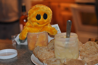 Mr. Happy busted out of his jar when he saw the home-made whole wheat sour dough bread, with honey butter. (I had to wipe the drool off his chin.)