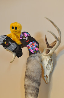Willie, Mr. Happy, and Millie hanging out on a White Tail Deer Scull with an Artic fox tail.