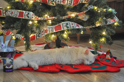 He still likes napping under the Christmas tree.